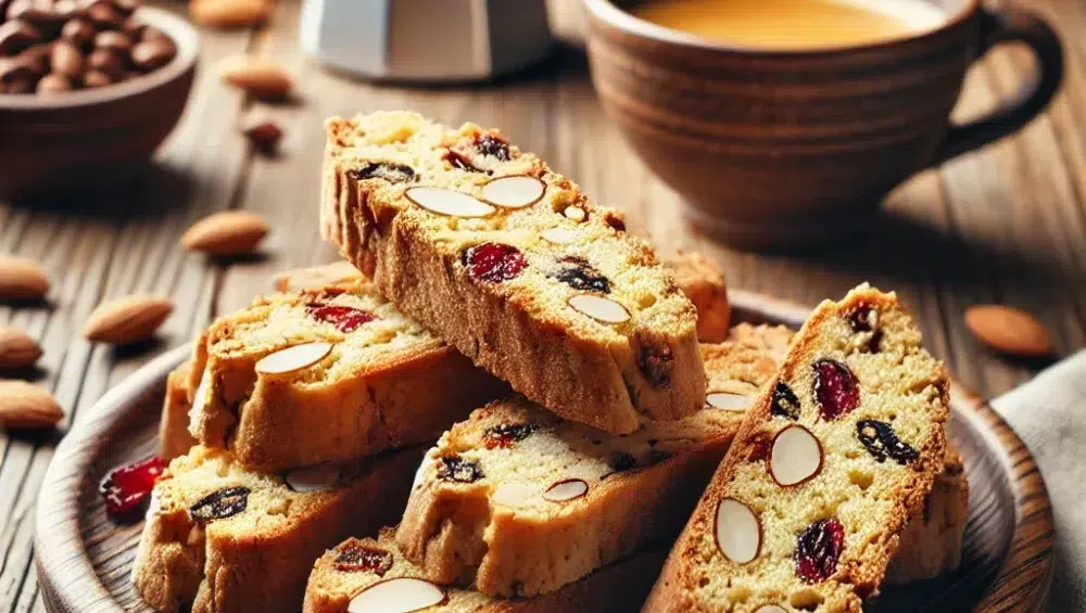 Biscotti, auch bekannt als Cantucci, sind traditionelle italienische Kekse, die seit Jahrhunderten in der italienischen Küche beliebt sind. Sie sind besonders, da sie zweimal gebacken werden: zuerst als länglicher Teigfladen und anschließend in dünne Scheiben geschnitten, die erneut gebacken werden, bis sie knusprig sind. Perfekt zum Eintunken in Kaffee, Tee oder sogar Wein. Ihre Knusprigkeit und der reiche Geschmack, oft verfeinert mit Mandeln, Nüssen oder Trockenfrüchten, machen sie nicht nur zu einem leckeren Snack, sondern auch zu einer hervorragenden Ergänzung für Desserts. Biscotti eignen sich ideal für lange Winterabende, sind aber auch eine wunderbare sommerliche Begleitung zu einem leichten Getränk. Da sie sich lange aufbewahren lassen, sind sie perfekt, um immer etwas Süßes griffbereit zu haben.
