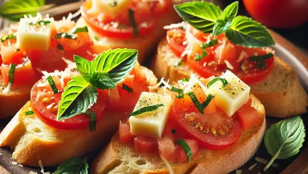 Bruschetta ist ein klassisches italienisches Gericht, das sich perfekt als leichter Snack oder Vorspeise für Treffen mit Freunden eignet. Die Einfachheit der Zutaten und die intensiven Aromen machen dieses Gericht so besonders. In dieser Variante erhält die Bruschetta eine frische Note durch die Zugabe von Minze, die zusammen mit Tomaten und Basilikum für Leichtigkeit und einen erfrischenden Charakter sorgt. Ideal für Sommerfeste, aber auch zu jeder anderen Jahreszeit ein Genuss. Knuspriges Baguette, saftige Tomaten, aromatische Kräuter und ein milder Käse vereinen sich zu einem Geschmackserlebnis, das immer begeistert.