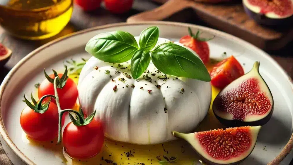 - Mit Früchten: Für einen besonderen Twist können Sie Burrata mit Feigen, Erdbeeren oder anderen roten Früchten servieren. Die Süße der Früchte bildet einen herrlichen Kontrast zur cremigen Burrata.