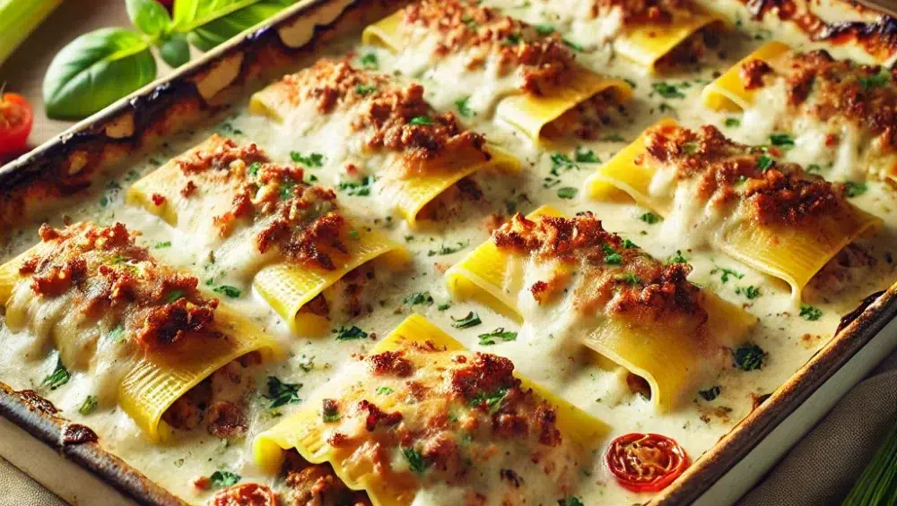 Cannelloni mit Fleisch in Lauchsoße begeistern mit ihrem intensiven Geschmack und einer eleganten Präsentation. Zartes Fleisch, cremige Lauchsoße und gratinierter Käse ergeben eine außergewöhnliche Kombination, die perfekt für ein Familienessen oder ein festliches Dinner geeignet ist. Dieses raffinierte italienische Gericht schmeichelt nicht nur dem Gaumen, sondern auch dem Auge. Buon appetito!