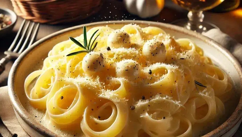 Die Geschichte von Fettuccine Alfredo beginnt im Jahr 1907. Alfredo Di Lelio, Inhaber eines kleinen Restaurants auf der Piazza Rosa in Rom, suchte nach einer Möglichkeit, den Appetit seiner schwangeren Frau wiederzuerlangen. Das Ergebnis dieses Experiments war ein Gericht aus Pasta, Butter und Parmesan – leicht, aber nahrhaft, um seine anspruchsvolle Ehefrau zu stärken. Alfredo nahm das Gericht in die Speisekarte seines Restaurants auf, wo es schnell beliebt wurde. 1914 eröffnete er sein eigenes Restaurant in der Via della Scrofa, wo er das berühmte Fettuccine Alfredo unter seinem Namen servierte.