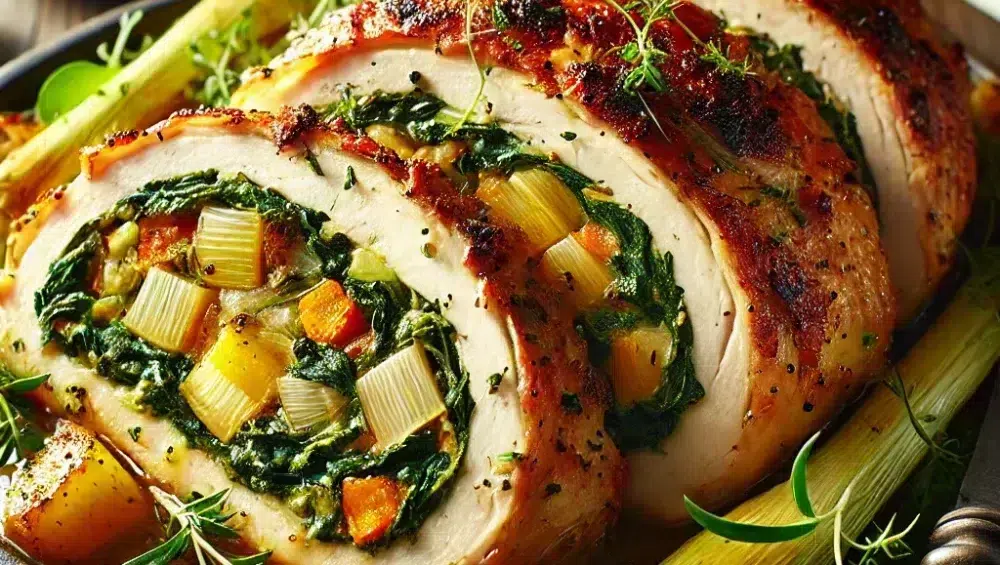 Ein gefüllter Truthahnbraten ist die perfekte Wahl, wenn Sie ein elegantes und geschmackvolles Gericht zubereiten möchten, das gleichzeitig leicht und aromatisch ist. Zarte Truthahnbrust, gefüllt mit einer cremigen Mischung aus Lauch, Schinken, Pinienkernen und Cheddar, ergibt ein außergewöhnliches Gericht, das sowohl auf dem Festtagstisch als auch bei Familientreffen hervorragend ankommt. Die zarte Struktur des Truthahnfleisches in Kombination mit der cremigen Füllung und der aromatischen Marinade schafft eine harmonische Komposition, die selbst die anspruchsvollsten Gaumen begeistert.