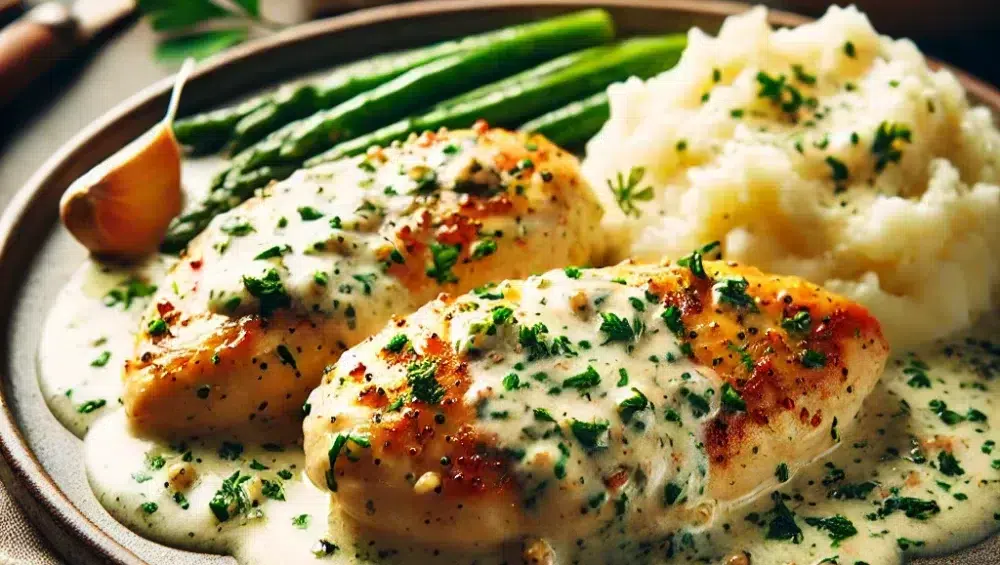 Hähnchen in Sahnesoße – ein einfaches, cremiges Mittagessen mit aromatischen Kräutern