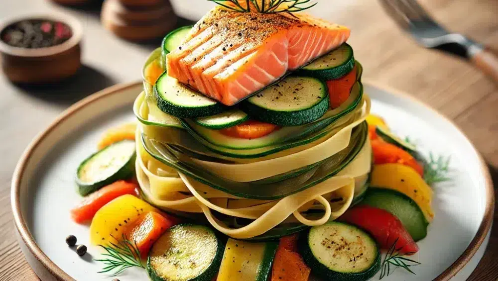 Die Lachspyramide ist ein Gericht, das Gesundheit, Geschmack und eine eindrucksvolle Optik vereint. Saftiger Lachs, knackiges Gemüse und Vollkornpasta ergeben eine perfekte Kombination für ein elegantes Mittag- oder Abendessen. Dieses Gericht sieht nicht nur beeindruckend aus, sondern liefert auch viele wertvolle Nährstoffe. Egal zu welchem Anlass – die Lachspyramide wird deine Gäste begeistern und schnell zu einem Lieblingsgericht in deiner Küche. Guten Appetit!