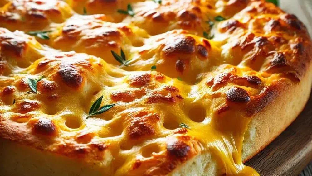 Die ligurische Käsefocaccia heiß servieren, solange der Käse noch geschmolzen und zart fließend ist. Sie schmeckt am besten frisch aus dem Ofen, wenn die knusprige Kruste im Kontrast zur cremigen Füllung steht.