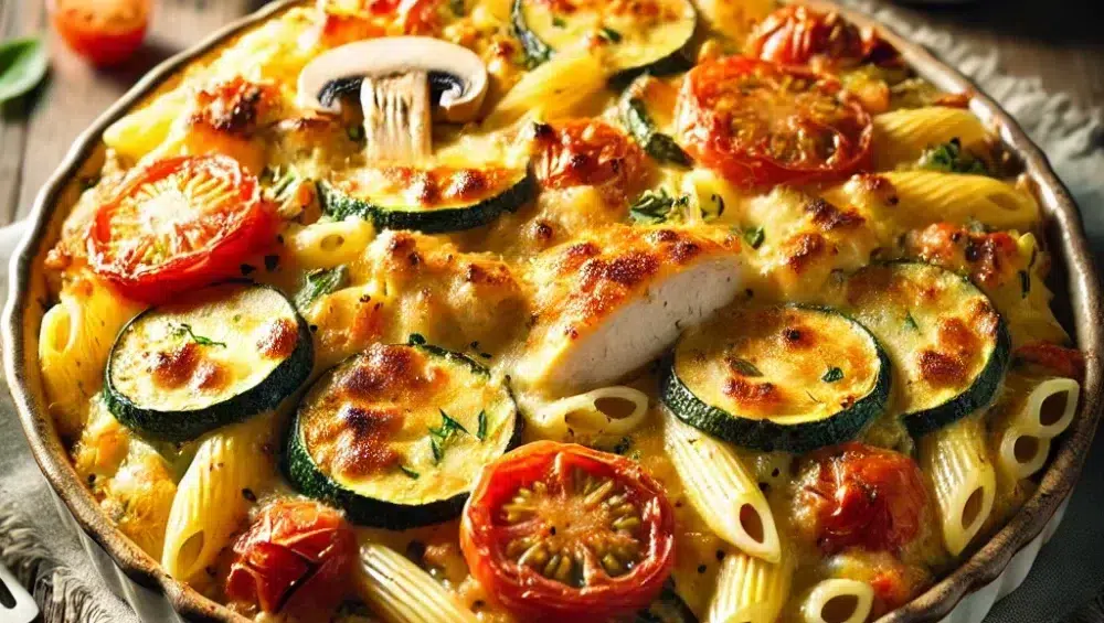 Ein Nudelauflauf mit Gemüse und Hühnchen ist eines jener Gerichte, die Einfachheit in der Zubereitung mit einem außergewöhnlichen Geschmack verbinden. Dieses Rezept eignet sich perfekt für ein Mittag- oder Abendessen sowie für ein Treffen mit der Familie oder Freunden. Es lässt sich leicht in größeren Mengen vorbereiten und problemlos wieder aufwärmen. Der Auflauf enthält alles, was man braucht – saftiges Hühnchen, aromatische Champignons, süße Tomaten und knackige Zucchini, die gemeinsam eine perfekte Geschmackskomposition bilden. Die Nudeln, die die Grundlage dieses Gerichts bilden, machen es sättigend und nahrhaft, während die mit Hühnerbrühe übergossene Mischung für Tiefe und feuchte Konsistenz sorgt. Die Zubereitung erfordert keine fortgeschrittenen Kochkenntnisse oder viel Zeit, was es zu einer idealen Option für vielbeschäftigte Menschen macht. Die Zutaten sind einfach und leicht verfügbar, und das Endergebnis wird selbst die anspruchsvollsten Gaumen zufriedenstellen. Dieser Auflauf ist zudem eine großartige Möglichkeit, mehr Gemüse in den Speiseplan zu integrieren – auf eine besonders schmackhafte Art.