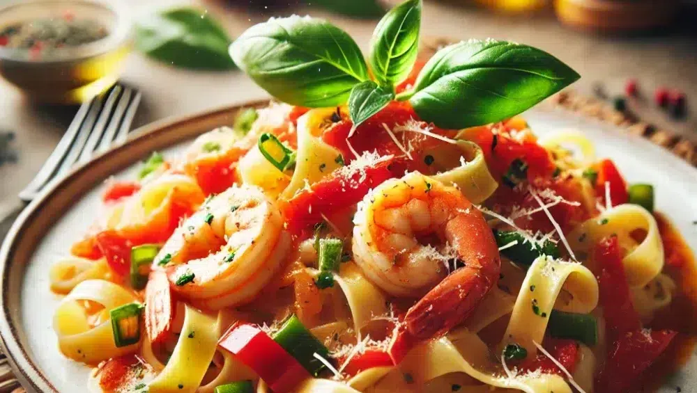 Pasta mit Paprika und Garnelen ist ein geschmackvolles Gericht, das dich in die sonnige Atmosphäre Italiens entführt. Saftige Paprika, aromatische Gewürze, zarte Garnelen und eine cremige Sauce ergeben eine harmonische Kombination, die jeden Liebhaber der mediterranen Küche begeistern wird. Dieses Rezept ist die perfekte Wahl für eine schnelle und dennoch elegante Mahlzeit, die sowohl geschmacklich als auch optisch überzeugt. Buon appetito!
