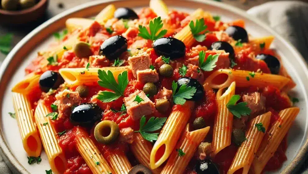Pasta mit Tomatensauce und Thunfisch ist eine hervorragende Idee für ein schnelles, zugleich sättigendes und aromatisches Mittag- oder Abendessen. Die Kombination aus saftigem Thunfisch, Tomatensauce, Kapern und schwarzen Oliven schafft eine köstliche Komposition, die uns in die mediterrane Küche versetzt. Frische Petersilie und Olivenöl verleihen dem Gericht Leichtigkeit, Aromenvielfalt und einen unwiderstehlichen Geschmack. Dieses Rezept ist die perfekte Lösung für Tage, an denen Sie in kurzer Zeit eine leckere Mahlzeit zaubern möchten.