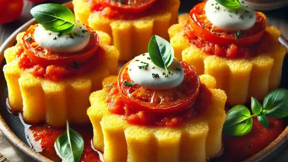 Polenta-Körbchen mit Tomaten und Mozzarella sind ein Gericht, das die Zartheit und Knusprigkeit von Polenta mit der Intensität der Tomatensauce und der Cremigkeit von Mozzarella verbindet. Sie sind schnell zubereitet und sehen dabei unglaublich beeindruckend aus. Dieses Rezept ist ideal für Liebhaber der italienischen Küche, die neue, interessante Möglichkeiten suchen, Polenta zuzubereiten.