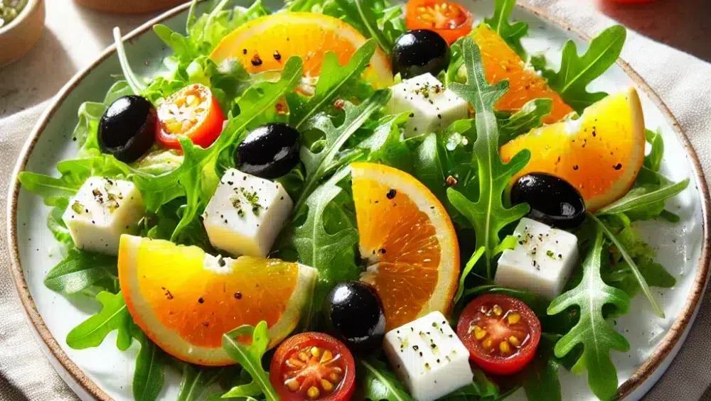 Der Rucola-Orangen-Salat ist die perfekte Wahl für alle, die Frische und intensive Geschmacksnoten schätzen. Der leicht scharfe und bittere Rucola harmoniert wunderbar mit der saftigen, süßen Orange, während Mozzarella dem Ganzen eine cremige und zarte Note verleiht. Dieses Gericht ist nicht nur gesund und voller Vitamine, sondern auch schnell zubereitet. Es eignet sich hervorragend als leichte Vorspeise, Mittagessen oder Beilage, insbesondere zu gegrillten Speisen. Dieser farbenfrohe Salat ist ein wahres Fest für die Sinne, das sowohl geschmacklich als auch optisch überzeugt.