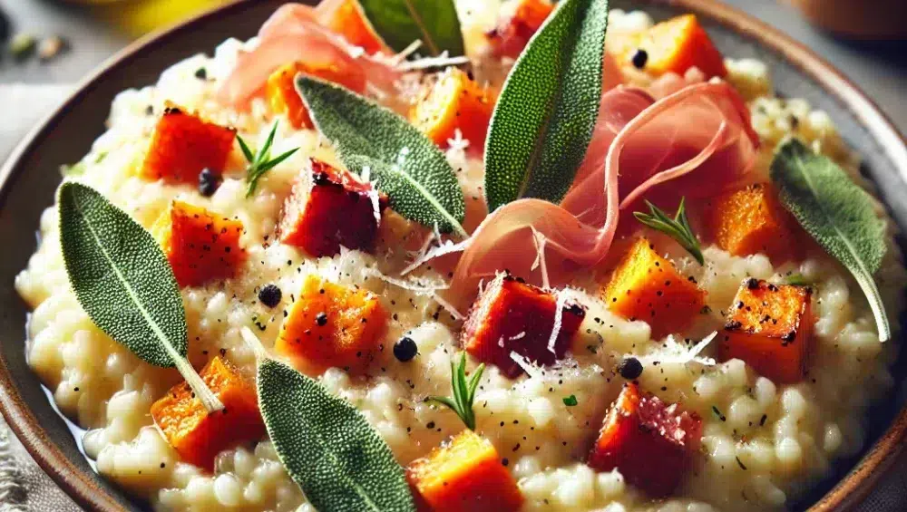 Risotto ist ein Klassiker der italienischen Küche, der durch seine cremige Konsistenz und den reichen Geschmack besticht. Dieses Rezept für Salbei-Risotto mit Süßkartoffeln erhält durch die aromatischen Salbeiblätter eine besondere Note. In Kombination mit gegrilltem Parmaschinken und dem zarten Geschmack der Süßkartoffel entsteht ein raffiniertes Gericht, das sich sowohl für ein tägliches Mittagessen als auch für ein elegantes Abendessen eignet. Salbei, bekannt für sein mildes, kräuteriges Aroma, harmoniert perfekt mit dem cremigen Arborio-Reis und den knusprigen Parmaschinkenstücken.