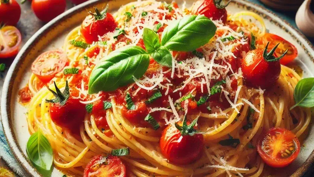 Obwohl es auf den ersten Blick wie eine weitere Variante von Pasta mit Tomatensauce erscheinen mag, hebt sich Spaghetti allo Scarpariello durch die perfekte Balance von Einfachheit und intensiven Aromen ab. Die Süße der Kirschtomaten, die Schärfe der Chiliflocken, der Duft von Knoblauch und die Cremigkeit des Käses verschmelzen zu einem harmonischen Ganzen.