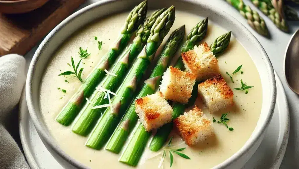 Die Spargelcremesuppe ist ein Gericht, das mit seiner Zartheit und Eleganz begeistert. Sie eignet sich perfekt für ein Frühlingsmittagessen oder als raffinierte Vorspeise bei einem festlichen Dinner. Die Parmesancroûtons verleihen der Suppe eine besondere Note und harmonieren wunderbar mit der cremigen Textur. Hier findest du ein detailliertes Rezept, mit dem du diese außergewöhnliche Spargelcremesuppe zubereiten kannst.