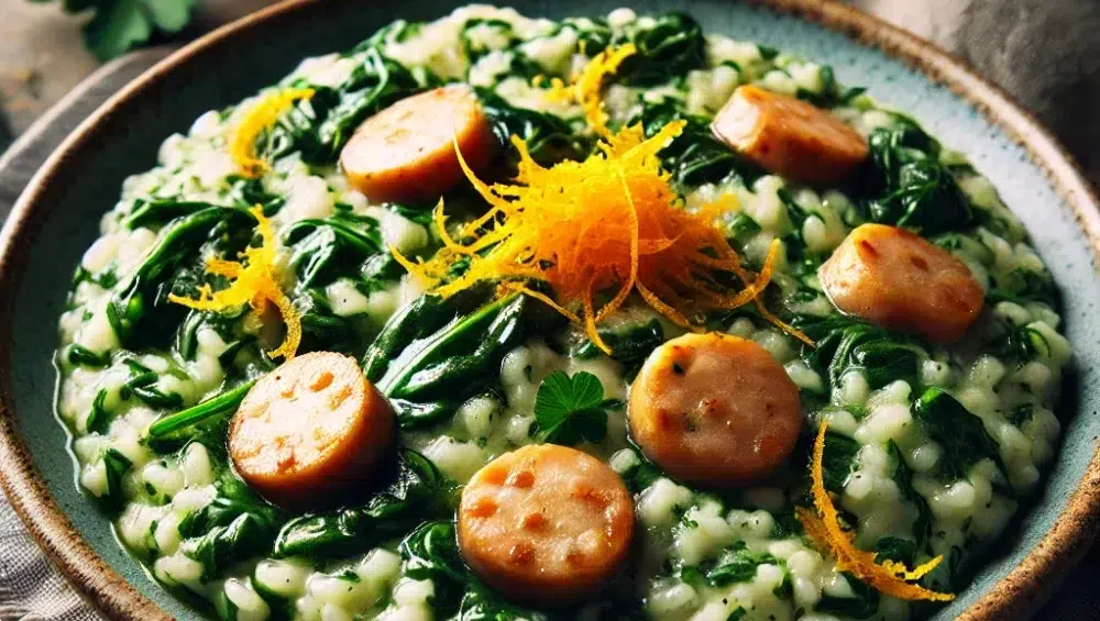 Spinat-Risotto mit Weißwurst und einer Orangennote – eine außergewöhnliche Geschmackskombination