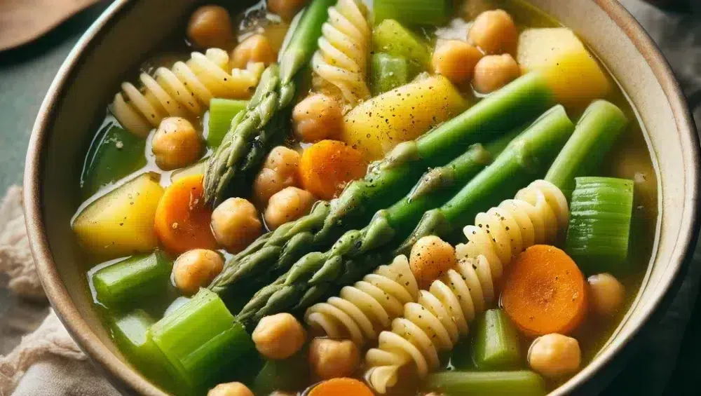 Die Suppe mit grünem Spargel und Kichererbsen vereint Gesundheit, Geschmack und Leichtigkeit. Sie eignet sich ideal als leichtes, aber sättigendes Mittagessen und liefert nicht nur Genuss, sondern auch wertvolle Nährstoffe. Grüner Spargel und Kichererbsen bilden eine harmonische Kombination, die in dieser Suppe perfekt zur Geltung kommt. Dieses Gericht wird sowohl Liebhaber klassischer Aromen als auch diejenigen begeistern, die neue Geschmackserlebnisse suchen. Guten Appetit!