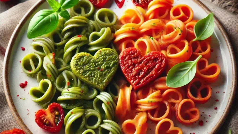 Der Valentinstag ist eine besondere Gelegenheit, Zeit mit einer geliebten Person zu verbringen und die Liebe in romantischer Atmosphäre zu feiern. Was könnte besser sein als ein gemeinsames Abendessen, das nicht nur das Auge, sondern auch den Gaumen erfreut? Valentinstags-Pasta mit Pesto ist die perfekte Wahl für diesen Tag. Dieses Gericht ist einfach, aber äußerst beeindruckend – die Kombination aus grünem Rucola- oder Basilikum-Pesto und rotem Pesto schafft einen wunderschönen Kontrast auf dem Teller, der an die Farben der Liebe erinnert. Die zarten Aromen der frischen Zutaten machen das Abendessen nicht nur romantisch, sondern auch gesund und leicht.