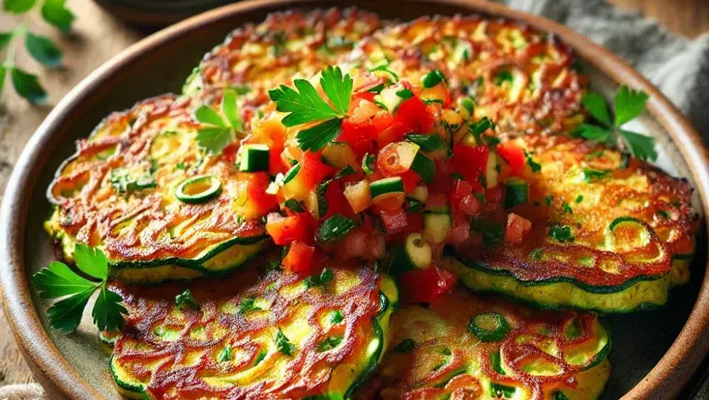 Zucchini-Kartoffel-Puffer mit Kräutern und Salsa sind ein vielseitiges Gericht, das sich für viele Anlässe eignet – vom Alltagsessen bis hin zu geselligen Abenden mit Freunden. Sie sind leicht und dennoch sättigend, mit einem feinen Geschmack, der durch Knoblauch und frische Kräuter abgerundet wird. Die Paprika-Oliven-Salsa bringt einen erfrischenden Akzent und verleiht den Puffern mediterranes Flair. Probiere dieses Rezept aus und entdecke, wie einfach es ist, ein gesundes, farbenfrohes und schmackhaftes Gericht zuzubereiten. Guten Appetit!